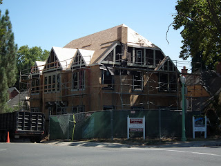 Updates on 39th and M in East Sac: It is now starting to look like the English Tudor that it will be. I love the trim work on this home.